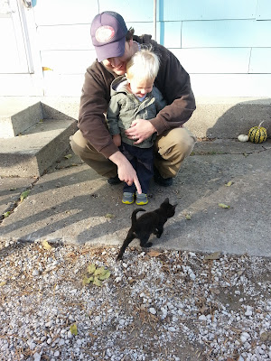 | Jackson was able to see the calves getting fed at a market up the street from us! So cute! |